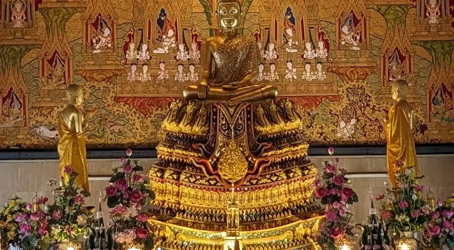 華蘭蓬寺是泰國知名寺廟之一,是一座傳統的泰國佛教寺廟,傳承了泰國寺廟金碧輝煌、令人驚歎的建築風格,看起來金光閃閃。