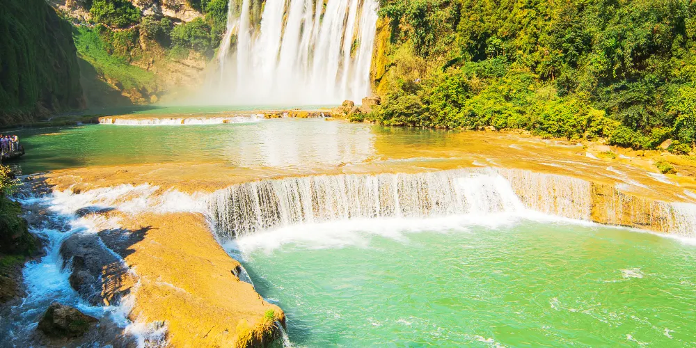 瀑布水沿著瀑面傾瀉而下,聲勢浩大,場面蔚為壯觀,令人驚嘆。運氣好的話還可以看到美麗的彩虹。這裡也是86版電視劇《西遊記》片尾曲的取景地。