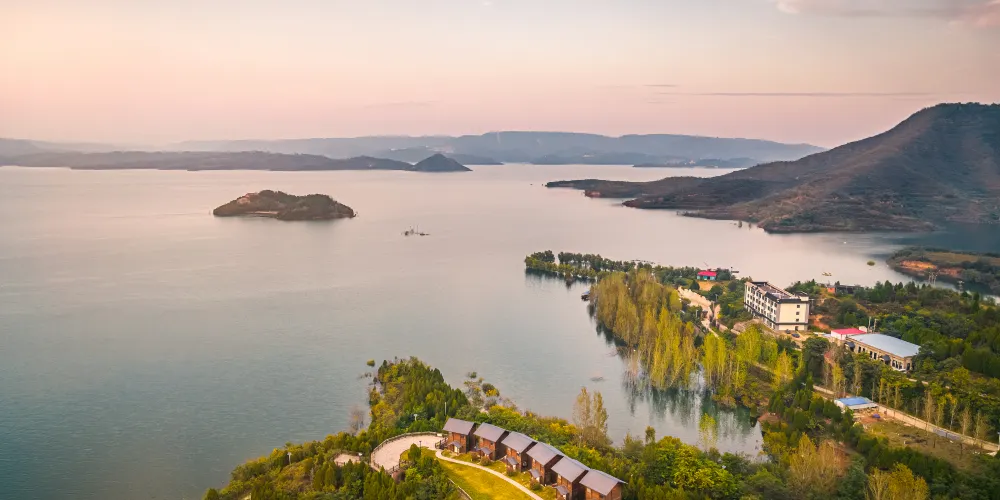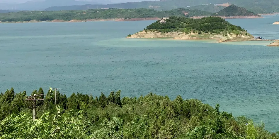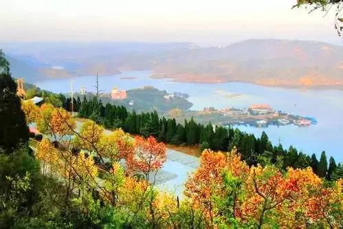 黃鹿山因有黃鹿而得名,以其秀美而聞名。相傳唐太宗李世民在此狩獵時遇見黃鹿,以為神鹿,命此山為黃鹿山。黃鹿山四季景色各不相同,春來百花吐艷、蜂飛蝶舞;入夏樹高葉繁,草長鶯飛;秋季霜天紅葉,碩果累累;冬天雪花飛舞,玉潔冰清。黃鹿山是小浪底工程壩前一半島,站在島邊,三面環水,是欣賞小浪底景色的絕佳之處。順水望去,大壩北端高豎著進水控制閘門,一排排,一個個,清晰可見。壩西邊方圓168平方公里的湖內不見黃龍但見清波,清得瓦藍碧透,清得水天一色,白雲朵朵,倒映水中,如大師名畫。黃鹿山上有仰韶晚期、龍山早期文化遺址、戰國時期妯娌和寨根村落遺址,北魏時期的謝家莊摩崖石窟造像等歷史古蹟。曹營凹,是東漢末年曹操屯兵的地方,河對岸大山寨是當時袁紹駐兵屯積糧草的地方。營前還有轅門、飲馬坑、放馬灘。而今這些遺址都已淹埋在庫底,衹有在遊船上沿黃鹿山的不同位置來確定它們的遺址了。