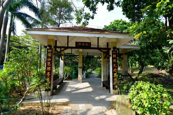 全園分東、西兩大區,東區引軸線連通蒲洲、大角兩山之景點;西區高低起伏,園道迴環曲折,融合東方園林之精華,兩區以湖面自然過渡,渾然一體。