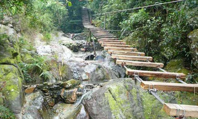 黃騰峽棧道全長近4公裡,徒步而行挑戰你的體能和意志。溪內林蔭蔽日,流水潺潺,鳥語花香。高含量的負離子令幽穀空氣清鮮,沁人心肺,也是一番別有洞天的境界。探險途中會經過黃騰峽新九景:“古堡通幽、三潭龍隱、蝴蝶穀、桫欏樹、濯珠潭、禾雀花王、“悟”、望龜台、聽泉”。當中不乏具有曆史遺留性或典故流傳的景點等待大家去研究和探討。