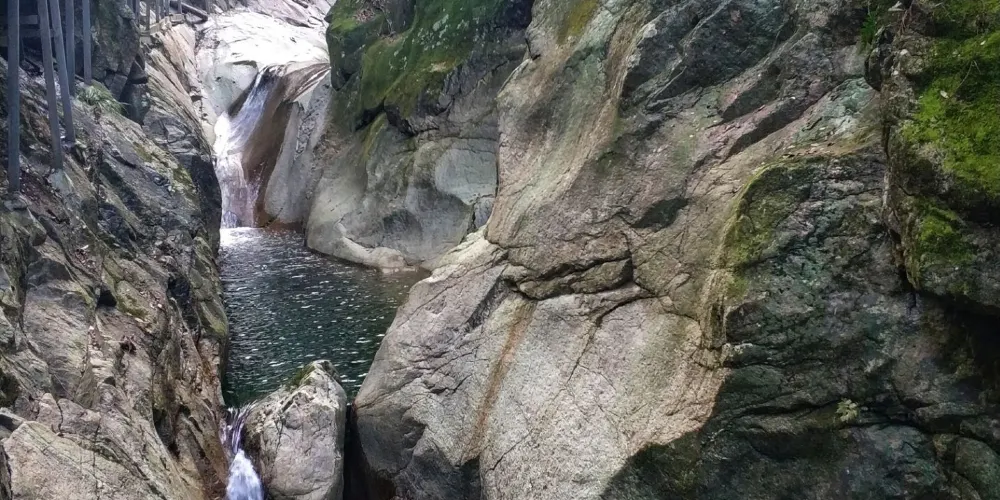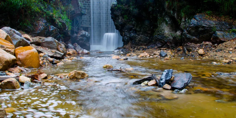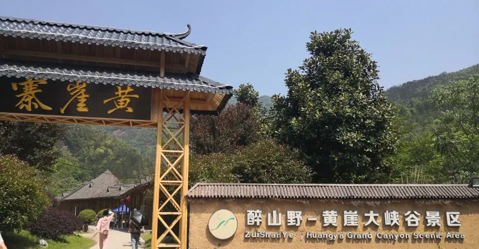 醉山野黃崖大峽谷是醉山野景區並不算太大,卻濃縮了皖南自然山水的精華。水壩、翠潭、疊瀑、彩林、山峯、比比皆是。為增強黃崖大峽谷內景點的多樣性和娛樂性,先後投入使用了高空滑索和頗具趣味的吶喊噴泉。另外景區內還新建了一座5D高空玻璃橋—醉仙谷玻璃天橋,玻璃天橋全長218米,地面懸空高度108米,非常的驚險刺激。
