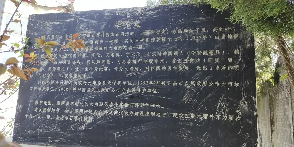 專家對華佗墓的公論是:許昌華佗墓為華佗真墓;亳州、華山、揚州華佗墓為衣冠冢;徐州彭城、河南沈丘華佗墓為紀念冢;洛陽、項城兩地的華佗墓,沒有葬於此地的古今佐證。華佗墓園現有墓冢、墓碑、華佗立像、華佗祠。張月莊路口向東1.7公里處。