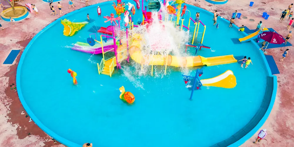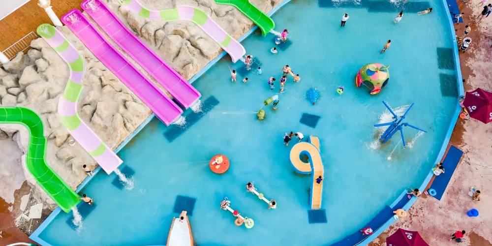 在這裡能看見一道明亮的比基尼風景線,還有各種腹肌人魚線八塊腹肌的小哥哥,這裡是親子遊玩的快樂天堂,大人和孩子可一起戲水玩耍,互相嬉戲、打水戰,享受清涼!