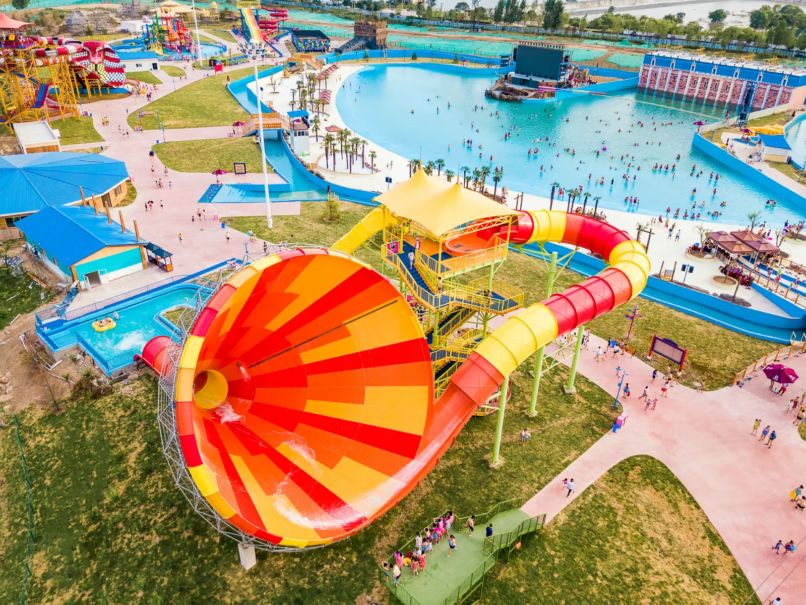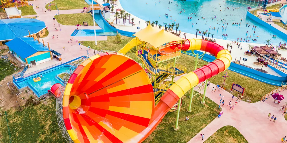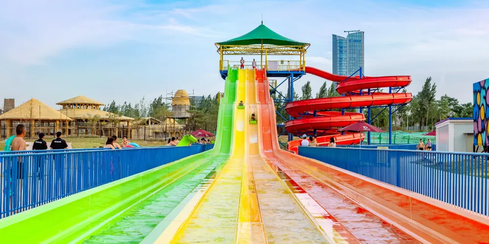 4條可同時遊玩的四彩波浪滑梯,體驗高速俯衝下滑,置身於清澈的激流中,隨時感覺要滑出滑道。繽紛色彩為你驅散熱氣,超長滑道給你極速體驗。