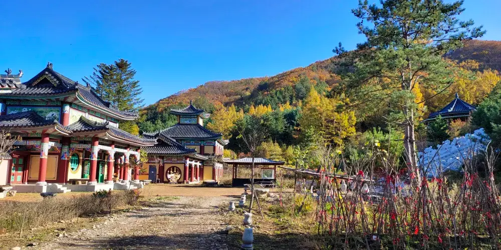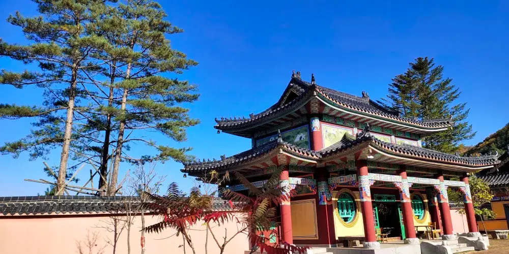 日光山主峰南麓的觀景台可俯瞰圖們江蜿蜒流淌,江對岸朝鮮南陽城市風貌清晰可見,江畔鐵路橋與公路橋並立,是中朝邊境貿易與文化交流的見證。山腰處華嚴寺依山而建,青瓦紅柱與蒼松翠柏相映,寺內保留朝鮮傳統佛教建築風格,晨鍾暮鼓更添靜謐氛圍。景區內鋪設木棧道及登山步道,串聯起觀獅台、仙人台等景點,沿途野百合、金達萊等植被隨季節更替綻放。