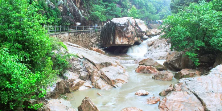 劃岩山位於黃岩西郊的頭陀鎮西北部,其主要景點為三瀑和裂穀。景區內瀑布眾多,有的珠簾輕瀉,有的銀龍急奔,既有彎折飄飛的,也有一瀉而注的,瀑布分上,中,下三瀑布,其中飛岩瀑最為壯觀,三個瀑布下面往往都有秀潭,秀潭後面則是水簾洞,瀑,潭,洞巧妙結合成三位一體則是劃岩山景區瀑布的特色,遊客在劃岩山景區內觀瀑,戲潭,駐洞則各有妙趣。