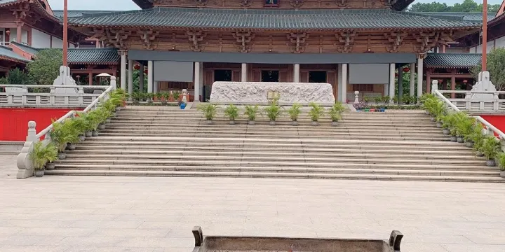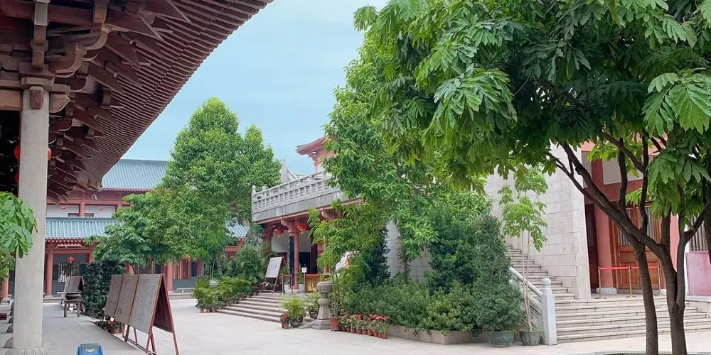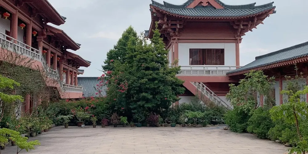 花都華嚴禪寺原名觀音寺,始建於清宣統元年(1908年),歷史上信眾羣集,香火興盛,以芙蓉山脈浩氣所歸,地脈雄渾,狀如蓮瓣,清幽典雅,身臨其境,萬塵俱忘。歷史上信眾雲集,香火鼎盛,近百年來幾經興衰。鐘樓安放的是大型青銅鐘,重達萬餘斤,鐘聲洪亮悠遠綿長。華嚴萬佛寶殿,全部採用印尼進口紅木波羅格,52根大石柱為福建惠安花崗巖,較大直徑為0.6米,高8米。大殿內供萬尊聖像,當中本師釋迦牟尼佛、大智文殊菩薩、大行普賢菩薩三尊,高6米,所有大小佛像均用紫銅鑄造,面貌生動,栩栩如生。殿內壁雕“善財童子五十三參”,造型活潑,色彩艷麗多姿,置身其中,倍感法喜充滿。整座大殿古樸典雅,莊嚴肅穆。