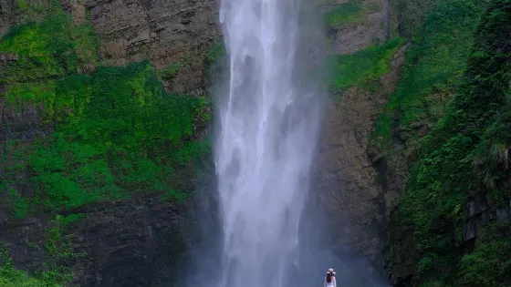 4.5 分50 則評價距離市中心 距離市中心25.6公里流沙瀑布位於德夯風景名勝區內九龍溪源頭,瀑布高216米,如白練凌空,似銀紗懸壁,是中國較高的瀑布。從德夯苗寨順著九龍溪步行不遠,便可見到流沙瀑布。溪水從絕壁之上騰空而下,較高的落差,流水到了下面就散落成流沙狀,因此瀑布被稱為流沙瀑布。豐水期,滾滾流水從懸崖上飛落入深潭,猶如九龍翻波,氣勢磅礴;枯水期,流水飄下懸崖,時而如輕紗拂面,時而似珠簾懸掛,宛如白紗蕩滌綠潭,溫柔秀雅。遊客可以沿著兩邊山路,從瀑布下走過,淡淡的水若霧似紗般紛紛揚揚飄下來,感覺如進入水簾洞一般,有絲絲細雨,浸入心脾。