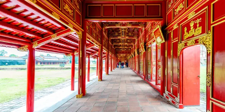 順化皇城是越南現存規模較大且保存較為完整的古建築群,城內有國子監、機密院、都察院等百官辦公的部區。順化皇城呈四方形佈局,四周有護城河環繞。京城內的主體建築為皇城,是採用了北京故宮的建築圖紙建造而成,所以參觀時彷彿進入了一個縮小版的北京故宮。