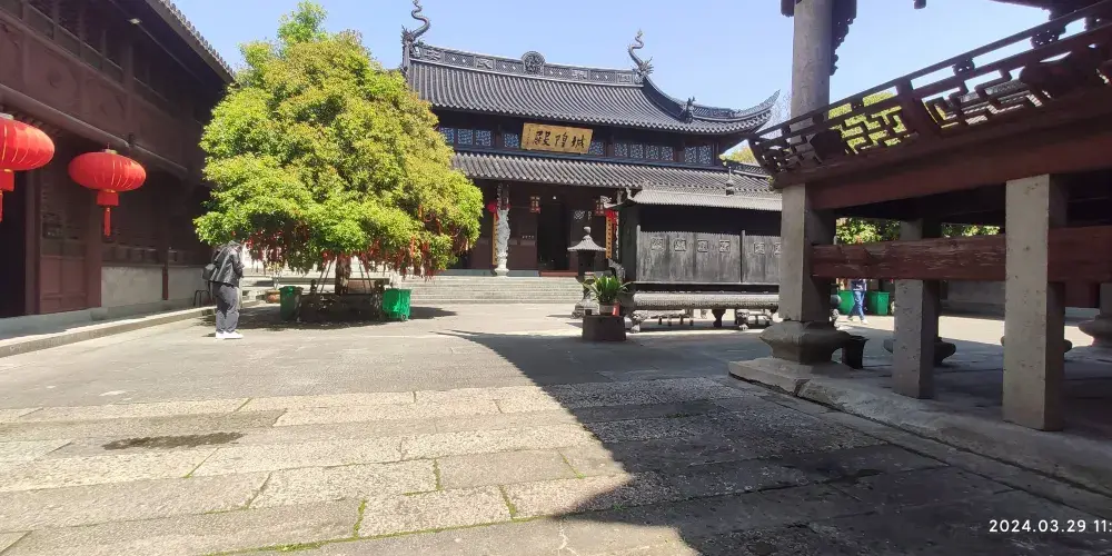 嵊州西北邊有座鹿胎山。據明代小説《二刻拍案驚奇》的説法,有個叫陳惠度的獵人有一回在這座山上射了一頭帶胎的母鹿,母鹿臨死前將小鹿生出來並將它身上的血舔凈,然後才安心死去。剡溪邊這座山便因此易名作鹿胎山。溪山第一樓就坐落在鹿胎山麓,建造年代已不可考,不過宋朝時候朱熹就登上此樓賞景了,並留下了“溪山第一”的讚語,這樓邊便因此得名了。溪山第一樓其實是城隍廟的前樓,樓高兩層,樓的看點是異常精美的地磚和栩栩如生的石雕與木雕。觀賞完樓的細節,登上二樓,憑欄眺望,西南邊是銀波粼粼的剡溪,西北是青翠奇秀的剡山,這裡是口口相傳的領略嵊州風光的好地方。