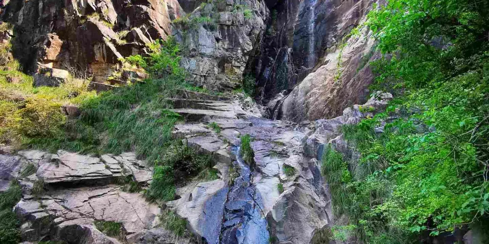 藍天凹是徽杭古道上的製高點,海拔較高。因兩座山峰呈“凹”字型,藍天白雲嵌入其中,故得此名。藍天凹也是徽杭古道上的一個重要節點,如果從浙川村出發,從這裡開始,便由上坡轉入下坡。這里地勢平坦,有高山草甸覆蓋,是古道中適合露營的地方。