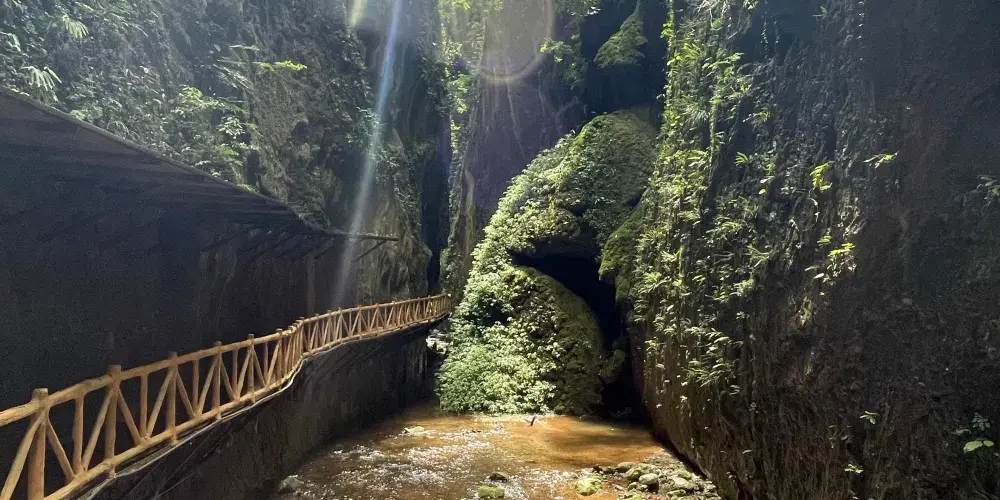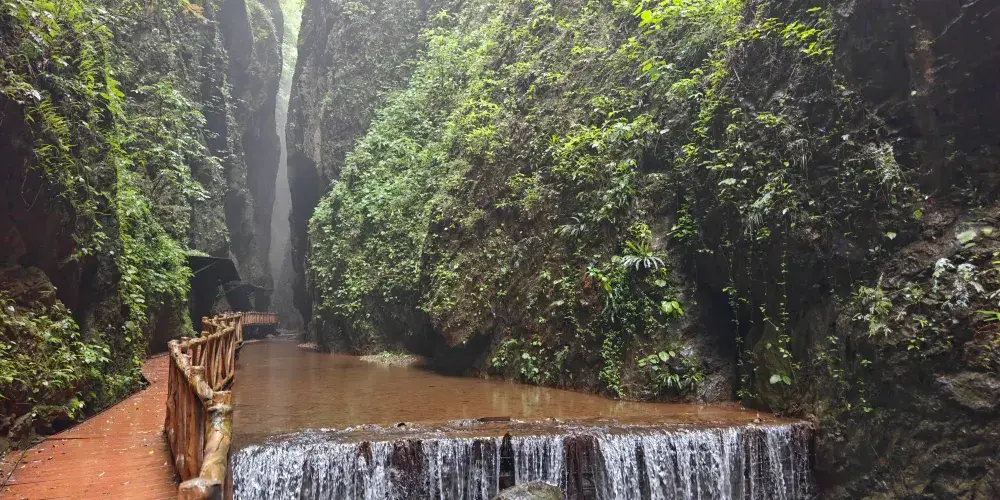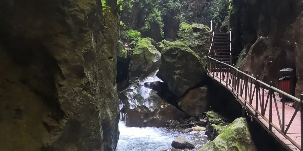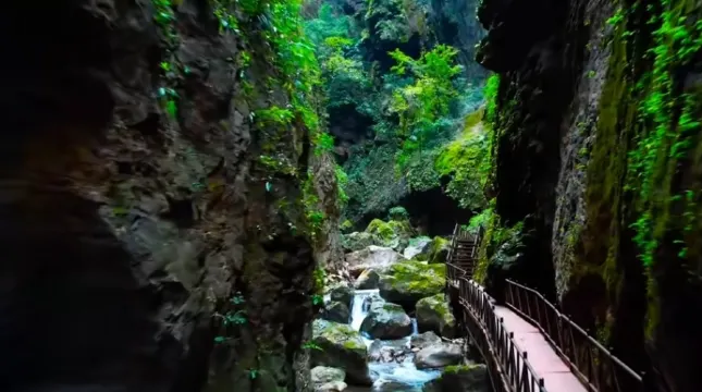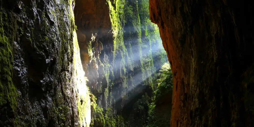 会泽雨碌大地缝位于云南省曲靖市会泽县城雨碌乡,以奇、秀、雄、险、幽著称。会泽雨碌大地缝入口两山相接,称为“生命之门”,临近洞口回头看,像是有屹立在对面峭壁的“大思想者”在沉思,给人以无尽的遐想。进入“生命之门”,两变钟乳石林立,既有一种刺激惊险新鲜的感觉,又提供了想象的空间。在惊叹的同时,陶醉在大自然神奇的造化之中。
