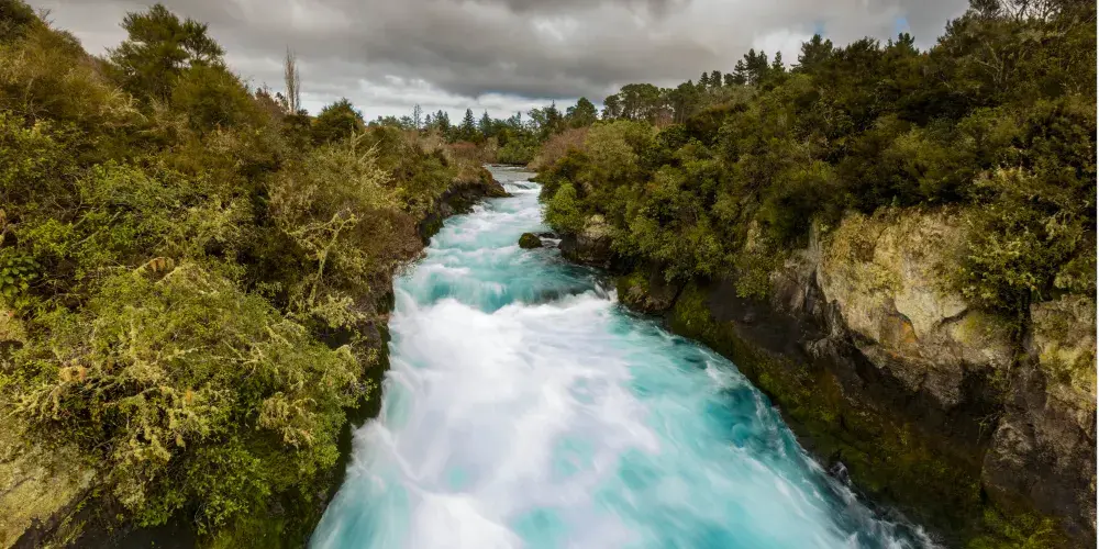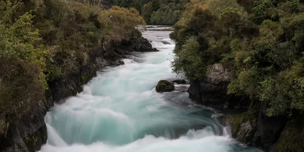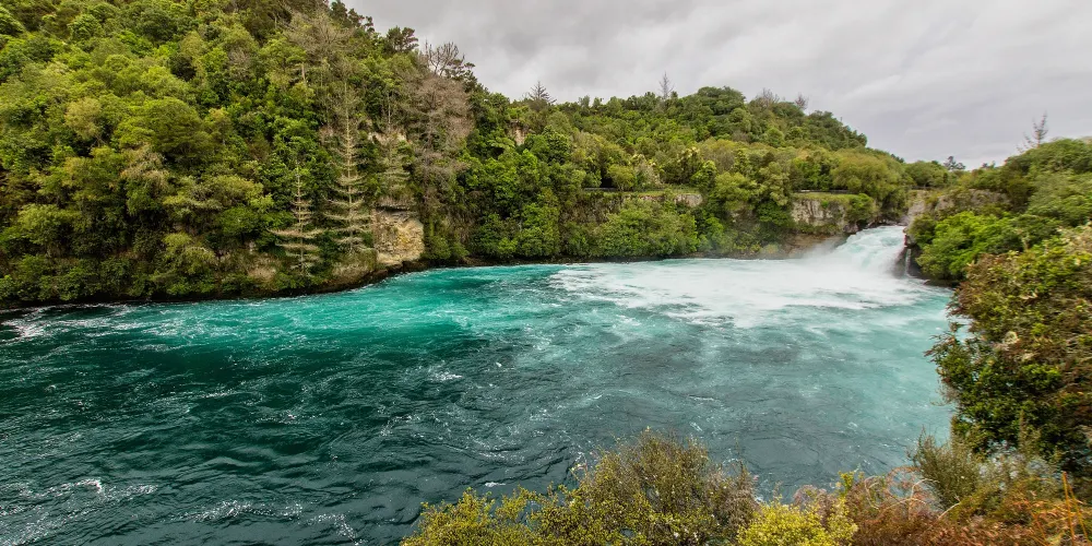 經由紐西蘭的陶泊市附近公路可達水量充沛、氣勢磅礴的胡卡瀑布,懷卡托河由12公尺高的河道斷層沖瀉而下,造成每秒230噸巨量的水流,淺藍如寶石的懷卡托河因隘口及斷層的作用,產生噴射及向下的巨大動力,形成泡沫般的水瀑宣洩而下,故當地人稱此瀑布為“Huka”,也就是泡沫的意思。
