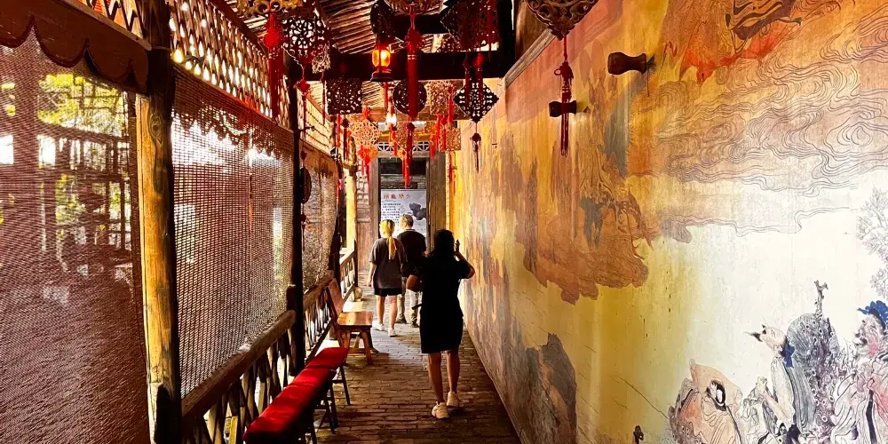湖南會館位於恭城縣城的太和街,是廣西重點文物保護單位。會館建於清朝同治十一年(公元1872年),為當時水路商務繁華時期由三湘同鄉會集資所建。佔地面積為l84平方米。由門樓、戲台、正殿、兩邊廂房組成。會館的大門有石刻對聯一幅:“客館可停驂七溪三湘允矣同聯梓里,仙部堪得地千秋,百世遐哉共鎮茶城。”整個會館佈局嚴謹,紅牆黃瓦,泛翠流金,飛檐挽天,蔚為壯觀。大殿裝修華麗,壁畫花飾繁多,前後風檐鏤雕細緻,檐牆彩繪構畫新穎。館內戲台矗立,呈凸字形,105平方米,青石壘砌台基,台底淺埋水缸36口,以增強音響效果。看台能容納1000餘人。館內還有“八桂一壺”紫砂壺,及各種茶藝、風情表演,並可以一邊品嚐瑤鄉特有的油茶、中國茶,—邊欣賞在幾百年前的古戲台上演出的瑤族有着兩千年歷史的儺舞,更顯中國茶文化之博大精深。