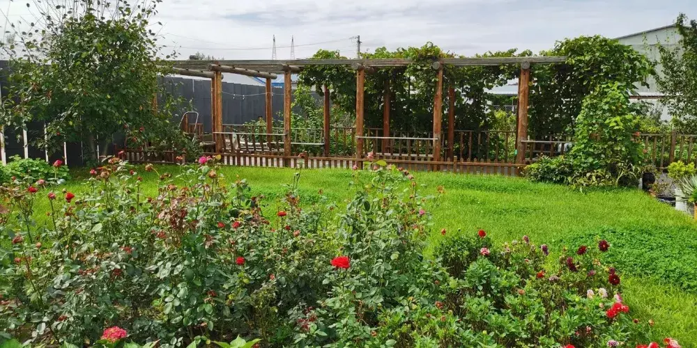 百花園實際上是一片森林草甸草原,位於喀納斯湖西岸,由於每到春夏季這裏就百花齊放、蜂飛蝶舞,因此被稱作“百花園”。百花園被四面翠綠羣山所包圍,佔地面積約為2.5平方公里。這裏綠草似毯,溝間溪流涓涓,滿坡的山花,如黃罌慄、麥芍、野火球、金錢花、柴胡、金老梅、正梅、正廉、低頭葱、獨活、白薊、大黃刺薔薇、尤花龍膽等爭相怒放,奼紫嫣紅,清香醉人。