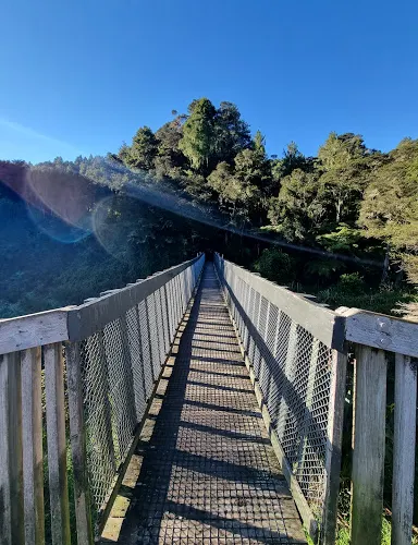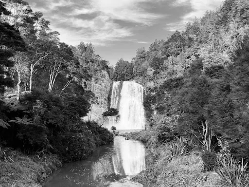 則評價奧克蘭東部灌木叢生的胡努瓦山脈(Hunua Ranges)中最受徒步行遊客歡迎的景點之一。胡努瓦瀑布從一塊堅實的火山玄武岩岩架中溢出,水流湍急、氣勢滂沱,從30米的高處傾瀉而下。這裡可以觀賞到種類繁多的原始樹木和樹蕨,其中包括了銀蕨(Ponga)、瓶蕨葉狀支木(Tanekaha)、巨朱蕉(Cabbage Tree)和桃拓(Totara)。步道順瀑布下遊的懷羅阿河(Wairoa River)而上,穿過美麗的原始叢林,沿著一條綠蔭河流直至景色秀麗的觀景台。上遊觀景步道上可以全方位觀賞胡努瓦瀑布和其周圍的森林美景。