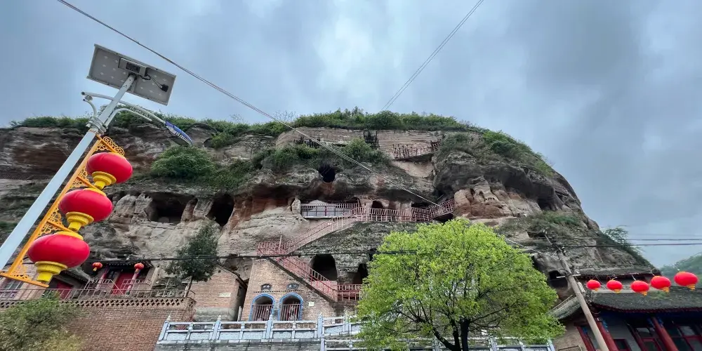 花果山石窟,位於彬縣城關鎮水簾村。南北朝時期,當地民眾在山崖面上開鑿了許多石洞,以逃避兵匪。唐朝初年,人們在九曲十八洞的周圍鑿出燈頭大的石窩,其中可盛清油一碗。每年元宵夜,點燈山儀式達到高潮,花果山上燈火通明。現在,這項活動依然存在。