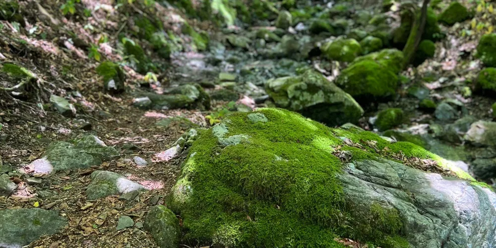 溪谷裏的水很清澈,就像是冰藍色的翡翠一樣,紅葉時期這裏的風景很美。