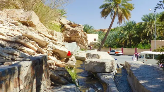 距離尼茲瓦約3小時車程的米斯法特阿伯耶古村依然保留着原本的風貌,村子裏的小房子坐落在斜坡上。古老的水渠流淌穿過,這裡有密集的植被,鬱鬱葱葱的大片大片的椰棗樹,是一個沙漠的綠洲,一個坐落於兩個縱深的溝壑之間的漂亮的村莊。乾枯的山脈與茂盛的棕櫚園形成了鮮明的對比。説到作物的繁茂,在果園之間縱橫的無數的漕溝功不可沒。它們在石頭下面穿行,連接着峽谷。