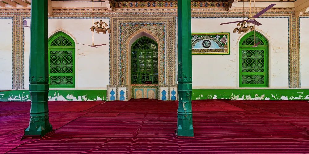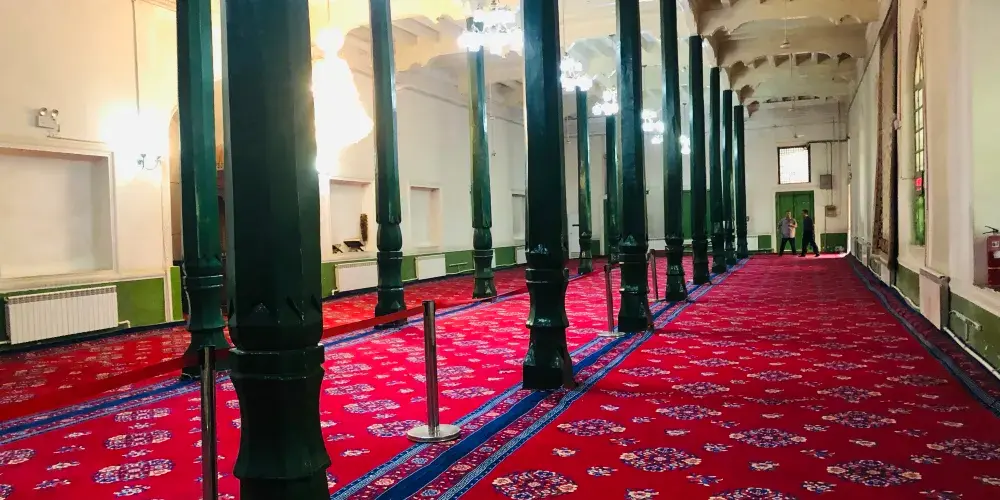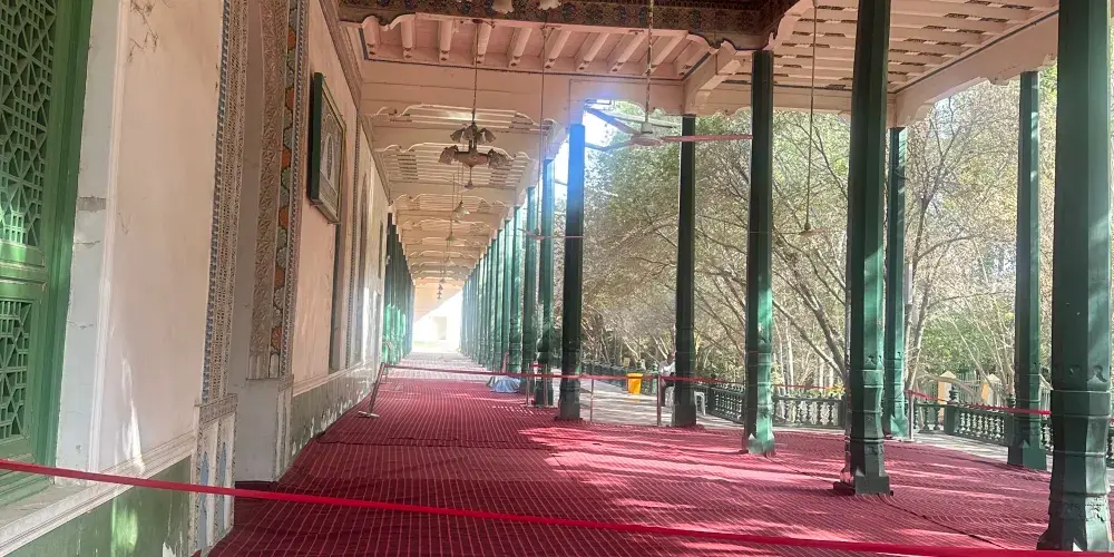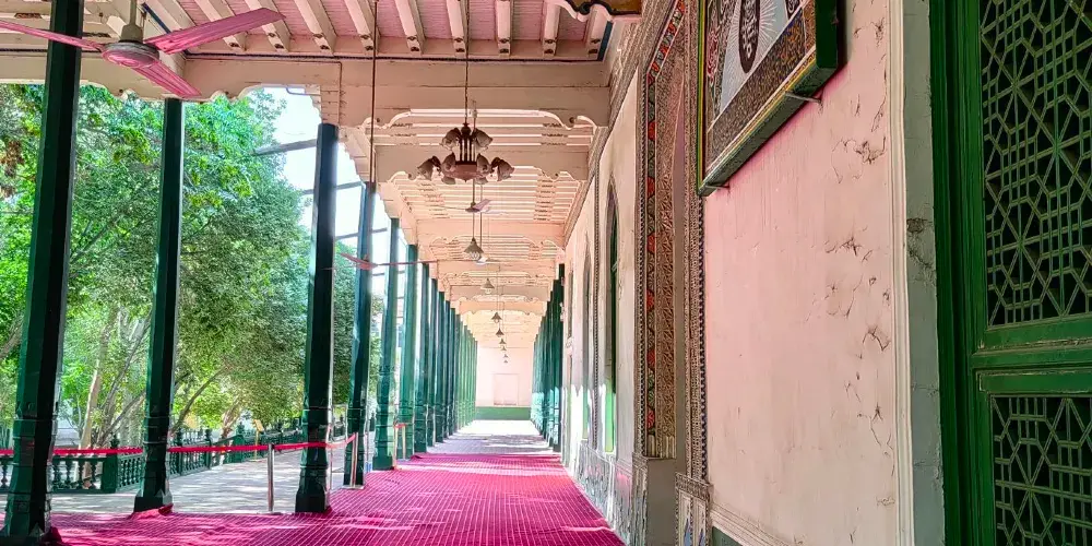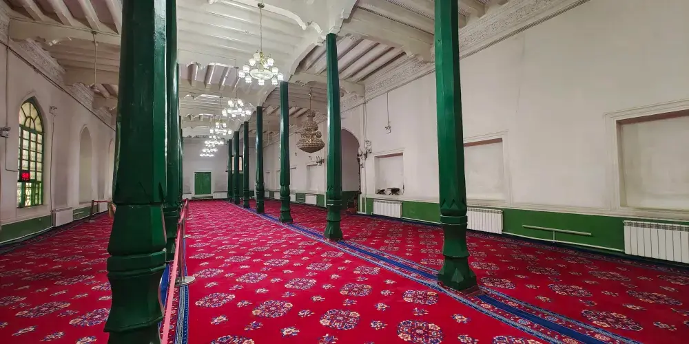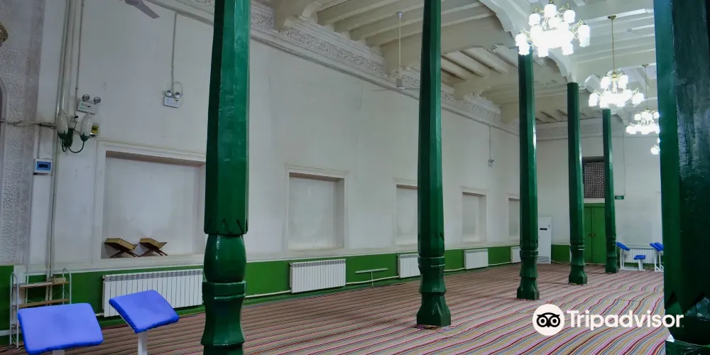 艾提尕爾清真寺位於喀什老城區中心,是規模大的清真寺之一。寺內有很多氣勢壯觀又富伊斯蘭特色的建築,可以一一參觀。而每天五次禮拜場面時在寺外見證,更是可以看到規模盛大的禮拜場面,感受濃厚的宗教氛圍。清真寺是一座庭院式的寺院,寺院東側正門口便是巨大的喀什艾提尕爾廣場,是喀什市的標誌。平時在大廣場上有很多人在此休閒遊戲,長鬍鬚的老爺爺和小孩一起在廣場邊閒坐曬太陽,非常的休閒,場面也很安然。廣場的西側是清真寺的東門,即清真寺正門門樓。正門是鵝黃色的建築,旁邊是兩座宣禮塔,弧形的造型柔和靜美,寺門上掛著巨大的寫有阿拉伯文清真言的牌匾。很多遊客會在此拍照。從東門處購票進入清真寺之後便可觀賞清真寺的院內,院內面積很大,橫豎都有一百多米,種植了眾多的樹木,使得整個清真寺都在綠蔭之下,在乾燥的喀什是難得的清新舒服的地方。院內有禮拜堂、講經堂、拱北孜等十幾座建築,以綠色為主色,每一座都很有伊斯蘭風情。中間還有水池花木等。為主參觀的建築便是禮拜堂,位於寺內深處,禮拜堂長有一百多米,以綠色為主色,有一百多根七米高的綠色大柱支撐,裡面一排排的坐墊便是禮拜的場所了。走進內殿可以看到裡面沒有任何的人像等。在院內走一圈參觀完寺院建築後便可回到東門離開。到艾提尕爾寺觀光,除了觀看寺內的建築,重要的其實是見證盛大的禮拜場面。每天寺內都會進行5次禮拜,禮拜時寺院不開放,但是可以在寺外見證。每次禮拜之前,寺院的廣播會播放宣禮的唱經聲音,悠遠空靈。之後便會有兩三千人在此禮拜,寺內無法容納便有很多人在寺旁和廣場上進行儀式。場面盛大而又安靜,給人心靈的震撼。每週五是伊斯蘭教的主麻日,這裡的禮拜人數更是會達到六七千甚至上萬,場面非常壯觀。另外,每年伊斯蘭的古爾邦節、開齋節等傳統節日時,會有遠近數萬名人在這裡歡歌跳舞慶祝節日,如果正好趕上一定要見證一下。