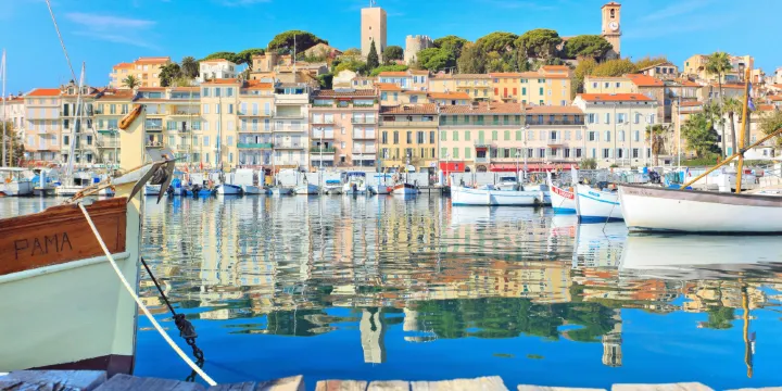 港口是康城較熱鬧的地方之一,密密麻麻的私人遊艇在這裏停泊,老港較合適的拍攝時間是傍晚時分,夕陽照射到老港海面,近處是老式的雙桅船和現代的遊艇的鱗次櫛比,亦可遠眺屹立在海邊的城堡山和鐘樓,前景和後景雜糅成一副靜美的圖畫。老港前面有一塊很大的空地,經常會有一些環保藝術品的展覽。坐落在這裏的餐廳銷售的狼魚和火魚都是新鮮的。stpierre碼頭建於1838年,是老港這裏較古老的一處。