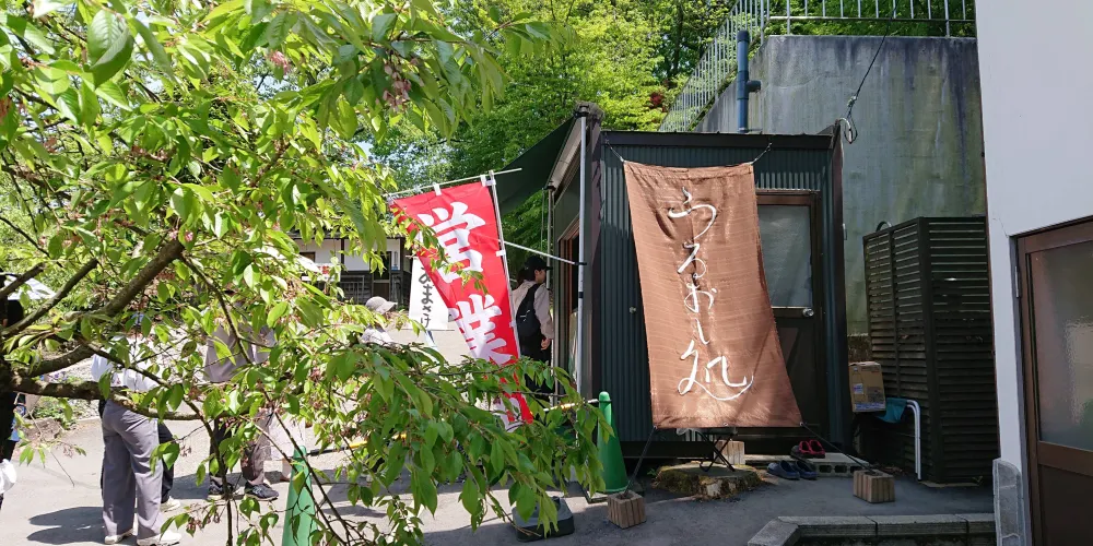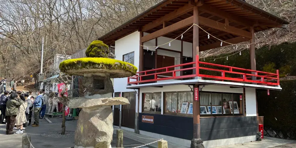 在山門等參拜道兩旁有很多賣“水澤寬麵條”的麵條店,是這裡的一大特色。