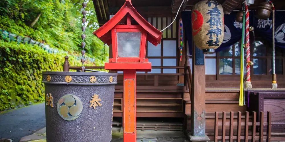 六角二重塔象徵六道輪迴,逆時針推動下方輪盤,可消災解厄,轉換壞運勢。日本人也講12生肖,在六角塔旁的12尊菩薩是各個生肖的守護神,花100元日幣就能點束香祈求護佑,菩薩身上堆滿了小人偶,就如在神明面前點盞光明燈一般,祈求事事順遂。