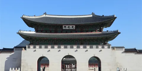 景福宮位於首爾市中心,是朝鮮王朝時期建造的第一座宮殿。景福宮一年四季風景優美,春天櫻花盛開,夏天綠樹成蔭,秋天銀杏樹下,冬天雪白玉潔。 《大長今》、《屋塔房王世子》、《來自星星的你》等韓劇都在此拍攝。景福宮東有建春門,西有永春門,北有新武門,南有光化門。光化門是宮殿的主入口,以其精湛的工藝、傑出的建築和美麗時尚的設計而引人注目。其中,衛兵換崗儀式是必看的景點。