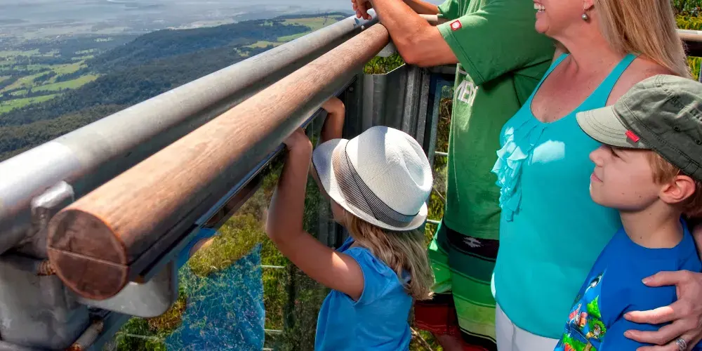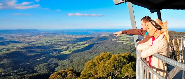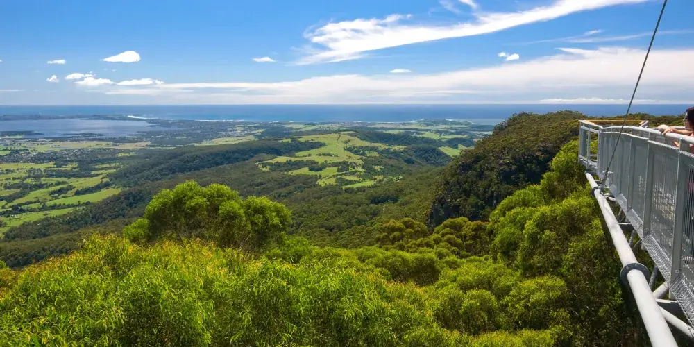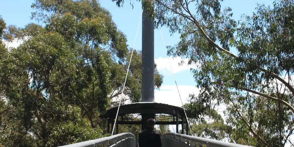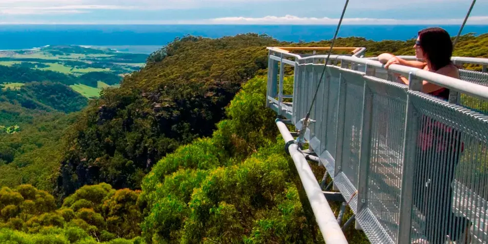在離悉尼一個半小時車程的地方,有一個非常特別的、能在樹梢上漫步的生態公園——伊拉瓦拉樹頂漫步道(IllawarraTreeTopWalk)。看看這個生態公園是什麼樣的,而且這種公園又是在全世界一共衹有四個,而它就是其中之一。它也是世界同類景觀中長高的樹頂漫步通道,又是澳洲悉尼的一條穿行於高大樹梢間的鋼鐵空中人行道。它確與眾不同和精彩,獨特魅力是整個步行道都是在由鐵架鋼索組合起來而成,沿着鐵架步行道邊走邊賞,觀賞兩邊的各種各樣原生動植物和風景,來到公園高的45米高騎士塔(KnightsTower)。登上彎彎曲曲、螺旋式的階梯,一步步地終於登上了有騎士威風的黑色鋼製塔。站在塔頂觀景台,眺望美景一覽無餘。