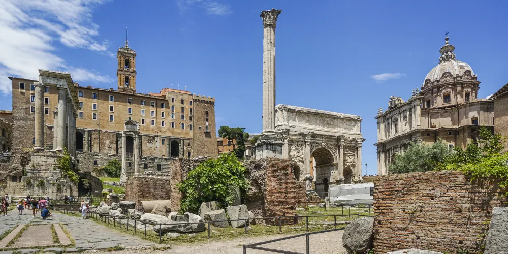 古羅馬廣場建於公元前7世紀,是羅馬諸多廣場中較為古老的一座。原為伊特魯里亞人的埋葬場,後來成為古羅馬的法律、行政管理、商業和宗教的地方。