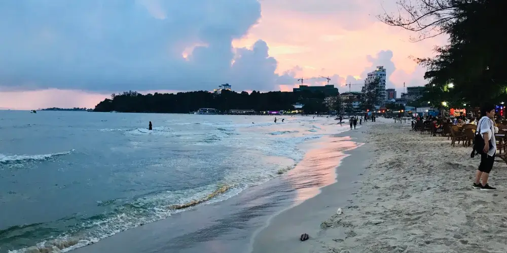 則評價索卡海灘是西哈努克城比較出名的海灘,有著潔白的沙灘和平緩的海底,周圍環境安靜。海水的水質清透,適合游泳,同時有工作人員定時巡查,兼任救生員,因此相對安全。與其他平緩的沙灘不同,這裡的沙灘因為水流的緣故,形成了一個梯級的幅度,正因如此這裡比較適合體驗衝浪、水上滑板等活動。
