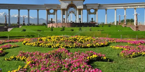 該紀念碑於1999年修建,碑高28米,頂部為高6米的金武士站在有翅膀的雪豹上的統治者。碑腳四周有四座塑像,分別是「天上的智者」、「大地的母親」和兩個孩子,代表著共和國的歷史和美好的未來,它們在一起組成的家庭則是國家存在和人類繁衍的基礎。紀念碑四周有四座雕塑,一位哈薩克老人,象徵著“天上的智者”,一位年輕的哈薩克婦女,象徵著“大地的母親”,兩個騎著駿馬的孩子,代表著哈薩克斯坦這個年輕共和國和它的美好的未來,這四座雕塑組合在一起寓意著國家存在和人類繁衍的基礎。