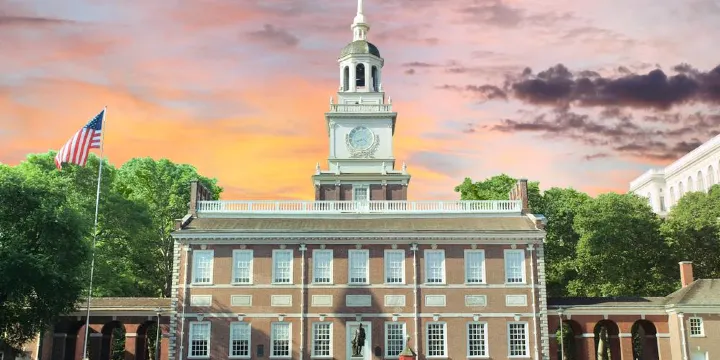 在國家獨立曆史公園裡,你可以看到綠樹環抱的獨立廣場,高高聳立的乳白色鐘塔,還有著站立在草坪上開國群英的銅像,這裡的整體氛圍使人感到莊嚴肅穆。獨立會堂古樸典雅,左邊的屋子是古老的賓夕法尼亞州法庭;右邊的屋子是第二次大陸會議和制憲會議的會址,室內陳設分毫未變,排成半圓形的13張桌子代表著13個殖民地,桌子上仍鋪著當年的綠絨檯布,擺著銀質墨水台以及寫字用的雁翎,甚至連照明用的蠟燭都沒有動過。這是一間彰顯北美曆史的房間,1775年,在這間簡樸而平凡的屋子裡,華盛頓被推舉為大陸軍總司令,1776年,《獨立宣言》在這裡通過,1787年,《美國憲法》又在這兒制訂。