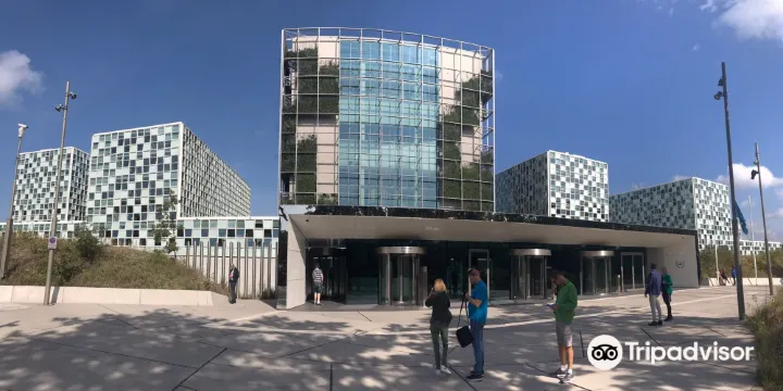 國際戰犯法庭位於荷蘭海牙,簡稱ICC,由羅馬條約建立。法庭離海岸不遠,座落在一片開闊的樹林中。暗紅色外牆的大樓在湛藍天空映襯下顯得格外醒目,左側高高矗立的鐘樓與旁邊二層坡頂樓房一豎一橫形成鮮明的對比。法庭大樓前有一片寬闊的草坪,草坪盡頭是一排長長的雕花鐵柵欄,大樓周圍顯得安靜平和。