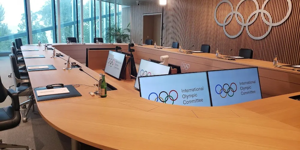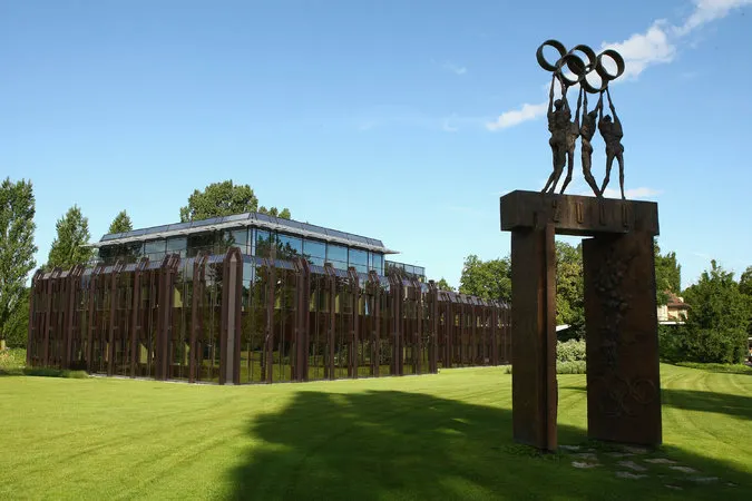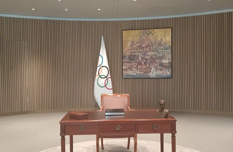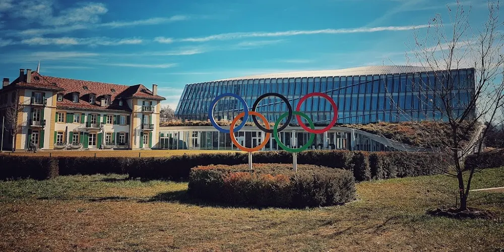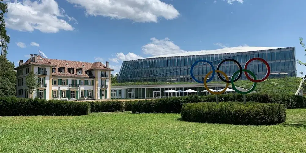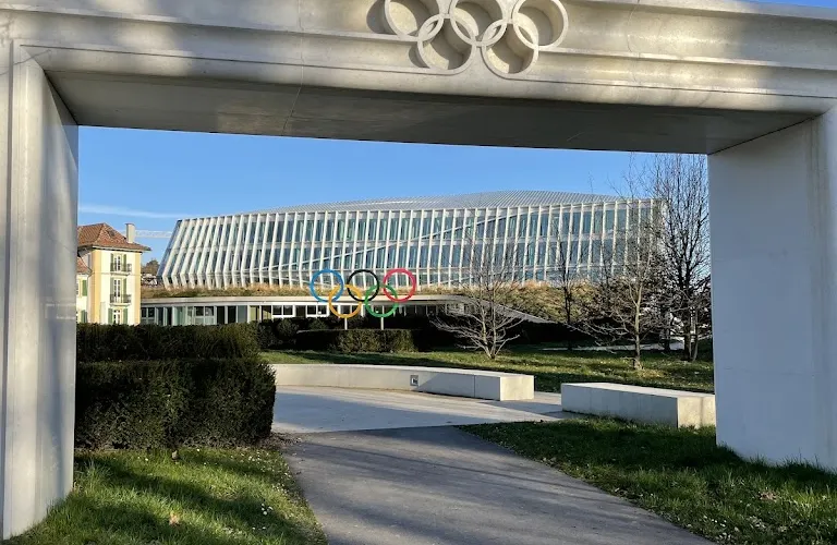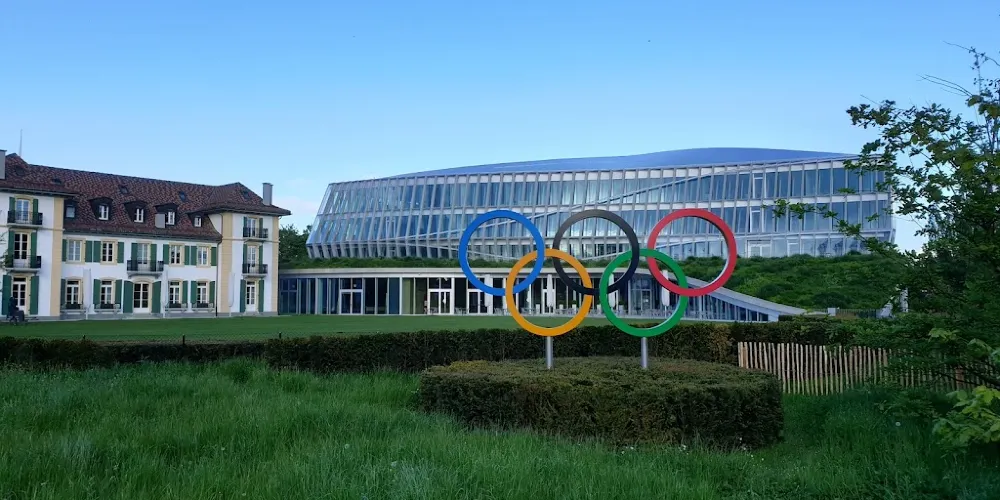 國際奧委會坐落在一棟樹林掩映的玻璃建築中,靠近日內瓦湖,周圍風景優美。辦公大樓十分低調小巧,似乎與奧委會的大名完全不搭,平時也不對外開放參觀,但依然有不少遊客來此打卡留念。