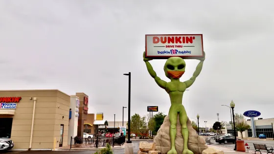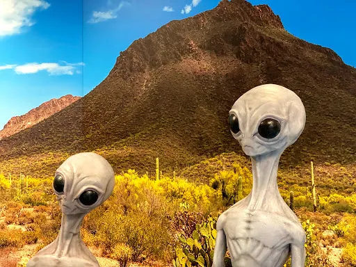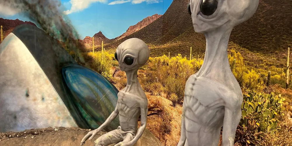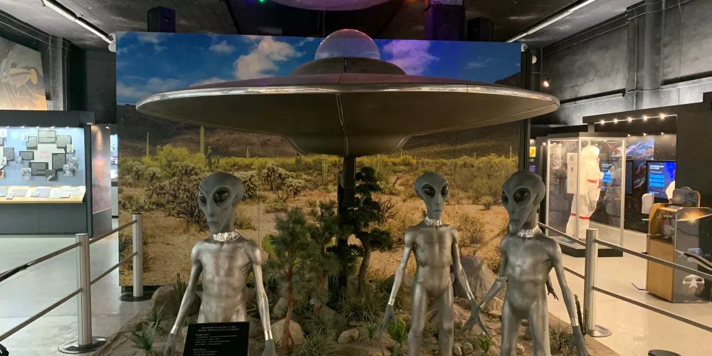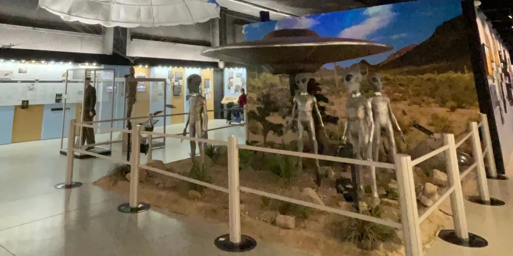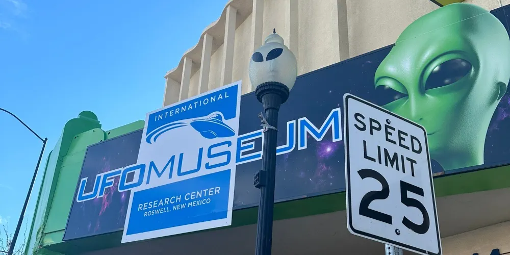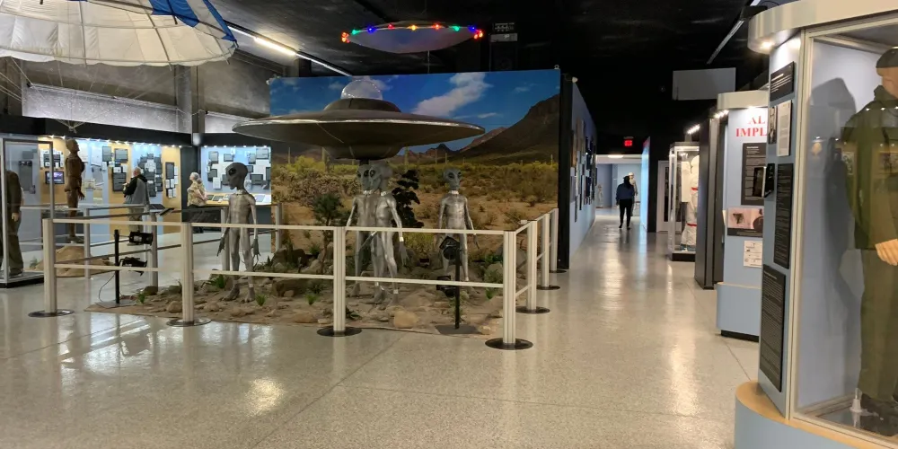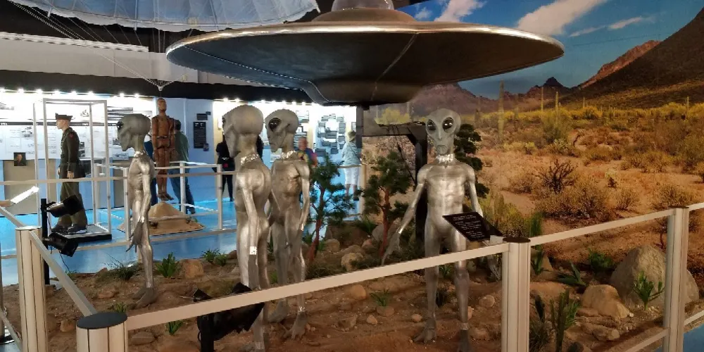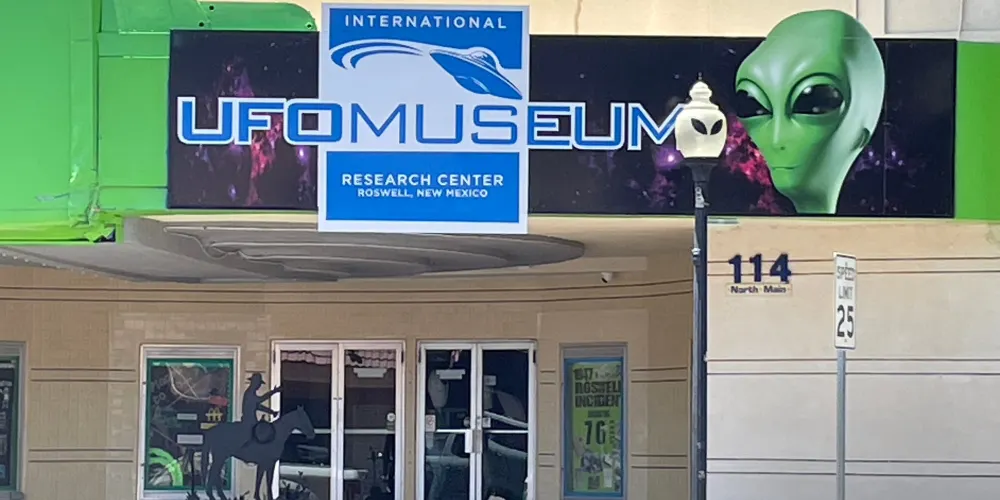 羅斯維爾UFO博物館地處滿是外星人元素的羅斯威爾小鎮。1947年,這裏發現了疑似外星人的矮小人形生物的屍體,使這座小鎮名聲大造。現在,這個小鎮似乎成為了外星人的城市。外星人商店裡出售着寂寞的外星人娃娃,停車場衹許UFO停靠,汽車上的外星人車牌,外星人牆畫和塗鴉,就連路燈都是外星人模樣。而博物館中也展出了許多與外星人有關的物品像是許多照片,模型等等,十分有趣。