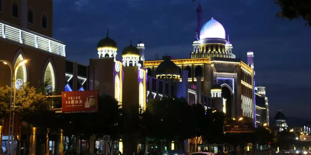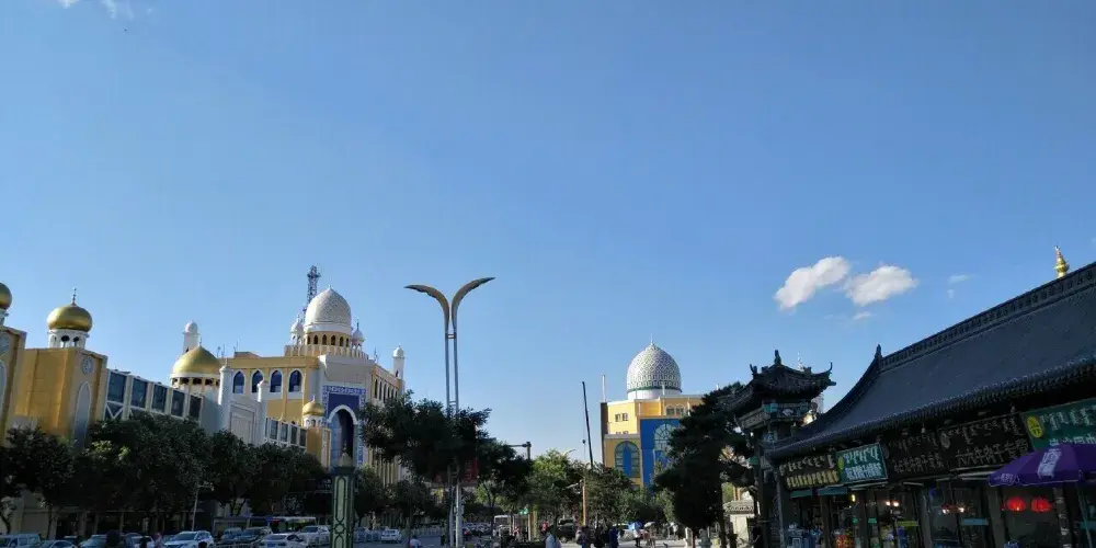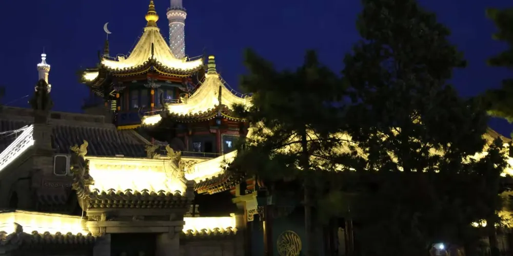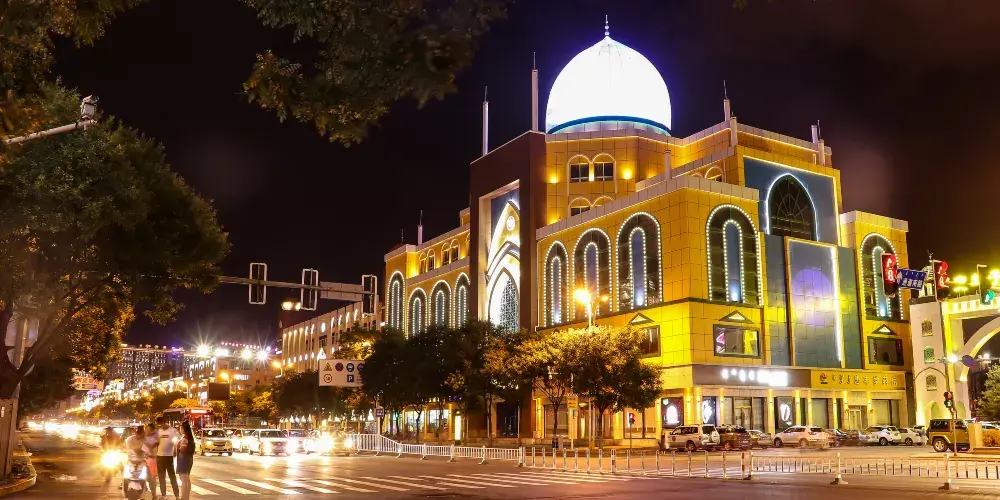 伊斯蘭風情街位於呼和浩特市回民區,街道兩側以疊澀拱券、穹隆、彩色琉璃磚裝飾出來的高樓氣勢宏偉,排排尖拱形並列的門窗、渾厚飽滿的綠色或黃色的球形殿頂、高聳的柱式塔樓,以沙漠黃為主而綠白相間的色調,讓人領略到濃郁的伊斯蘭風情。