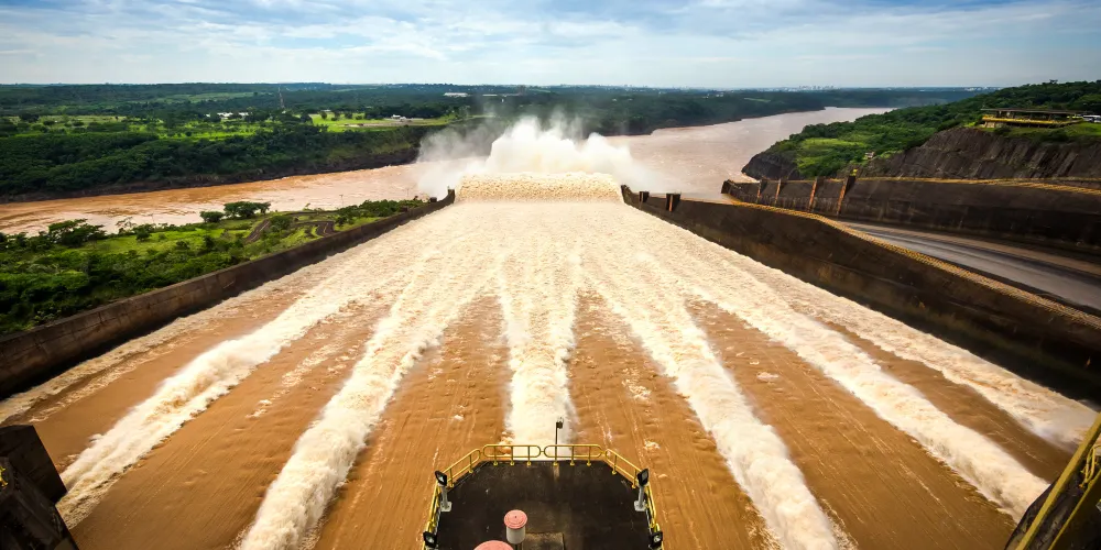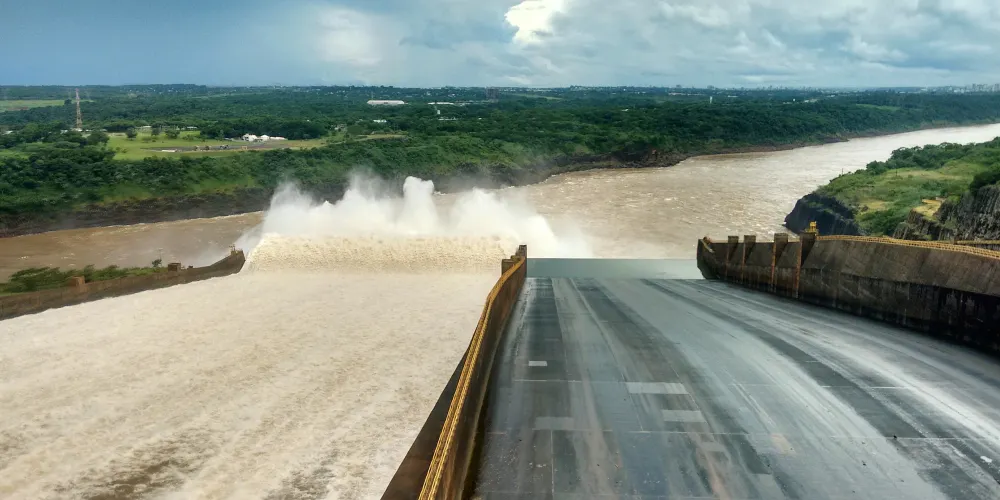 水電站位於巴西與巴拉圭之間的界河——巴拉那河上,這條河是世界第五大河,年徑流量7250億立方米。目前,水電站是當今發電量最大的水電站,大壩共有20台發電機組(每台70萬千瓦),總裝機容量1400萬千瓦,年發電量900億度,其中2008年發電948.6億度,而水電站發電機組和發電量由兩國均分。如今發電站的效能是顯著的,但是當初為了建伊泰普大壩所付出的代價也是巨大的,土著村莊、700平方公裡的的森林、與伊瓜蘇大瀑布相媲美的瀑布群。