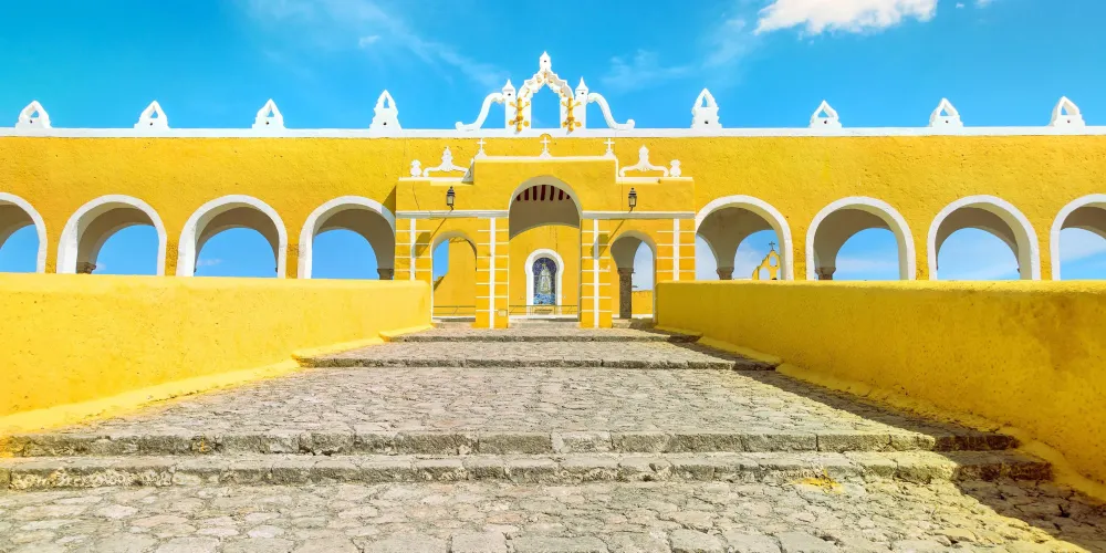 位於梅里達以東約72公裡外的墨西哥魅力小城伊薩瑪爾(Izamal)是猶坎坦州具有特色的小城之一。伊薩瑪爾,被稱作“山丘之城”,意指那些被掩埋的瑪雅金字塔。小城的歷史較早可以推溯到公元前700-450年也即瑪雅前古典中期,從那時起便有瑪雅人來此定居。據信伊察人隨後在此建立了瑪雅城鎮,並起名為“Itzamná”或“Zamná”,瑪雅語中意為“天上掉下的露水”。大約在瑪雅古典早期(公元300-600年)伊薩瑪爾已經成為如今猶坎坦州地區的瑪雅統治中心(之一),並在古典後期也即公元9世紀中至11世紀達到城市發展較好,成為猶坎坦北部較大的城市(之一)。在經歷了後古典期瑪雅-圖台克城市的短暫繁榮後,這座猶坎坦州比奇琴伊察和烏斯瑪爾還要古老的瑪雅古城突然衰敗,直至西班牙殖民者到來時,伊薩瑪爾幾乎已經成為廢墟。