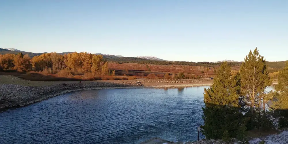 OxbowBendTurnout靠近jacksonJunction,被一致認為是觀看拍攝moran山理想的觀景點。SnakeRiver的水從大壩流下來,在這個地方繞了一個大彎,使這裏成為了一塊濕地。這塊濕地植被十分茂密,近處是平靜的蛇河,將遠處的moran山都倒映於水麪之上,景色尤美。每天有許多人喜歡來這裏看日出,伴着早晨的霧氣,十分浪漫。