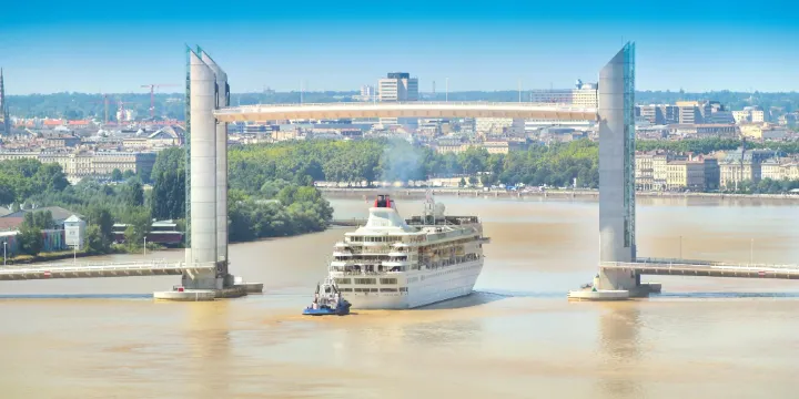 雅克·沙邦-戴爾馬大橋位於法國南部港口城市波爾多,是跨越加龍河連接波爾多兩岸的一座垂直升降式公路及軌道交通兩用弔橋。這座橋於2013年通車,它全長575米,建有四座高聳的橋塔,每當有大型船隻想要通過時,橋塔內的機械就會工作,將主橋高高升起,等船隻通過後再降下去讓車輛通行,整個過程壯觀而有趣。
