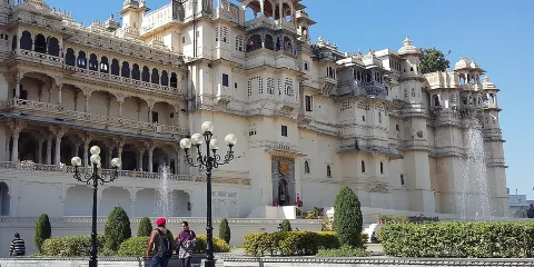 這座雄偉的城市宮殿上面築有陽台、瞭望台和炮台,它是拉賈斯坦最大的宮殿,正面的宮牆有244米長,30.4米高。這座宮殿是由城市的建立者——王公烏代·辛格二世開始建造的,後來經過許多位王公的不斷擴建,這裡已經變成一個建築物的聚集區(包括11座獨立的小型宮殿),但是它仍然令人驚奇地保持著設計的一致性。從宮殿上層的天台上可以瞭望湖面和整座城市,景色很棒。