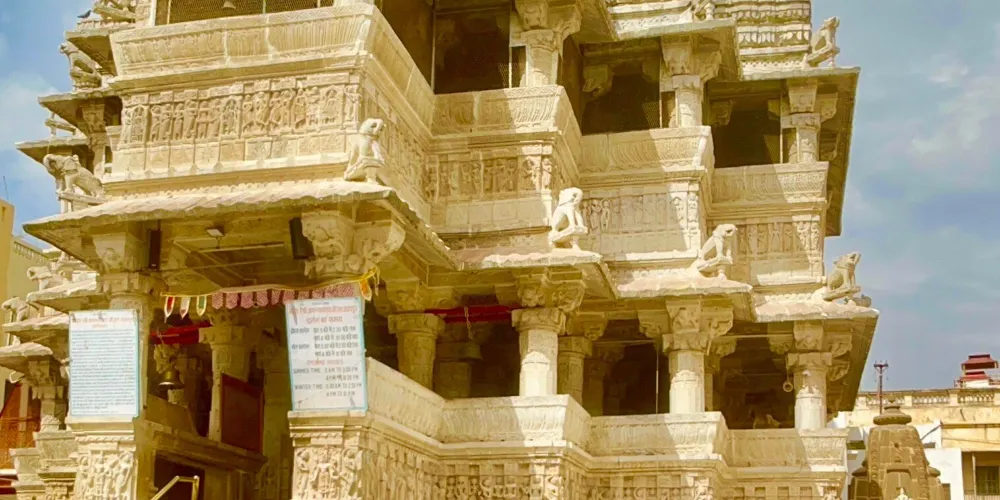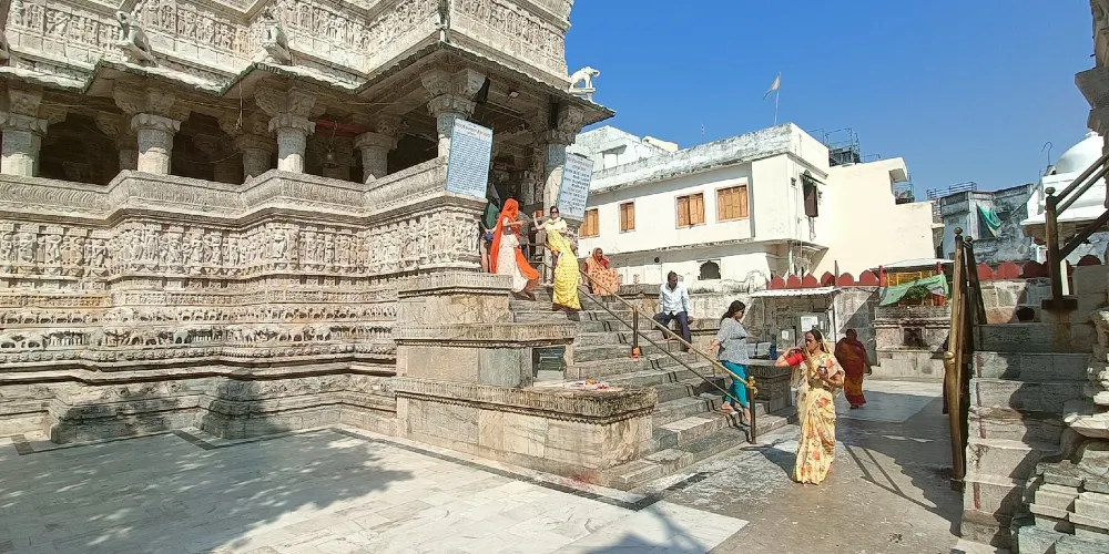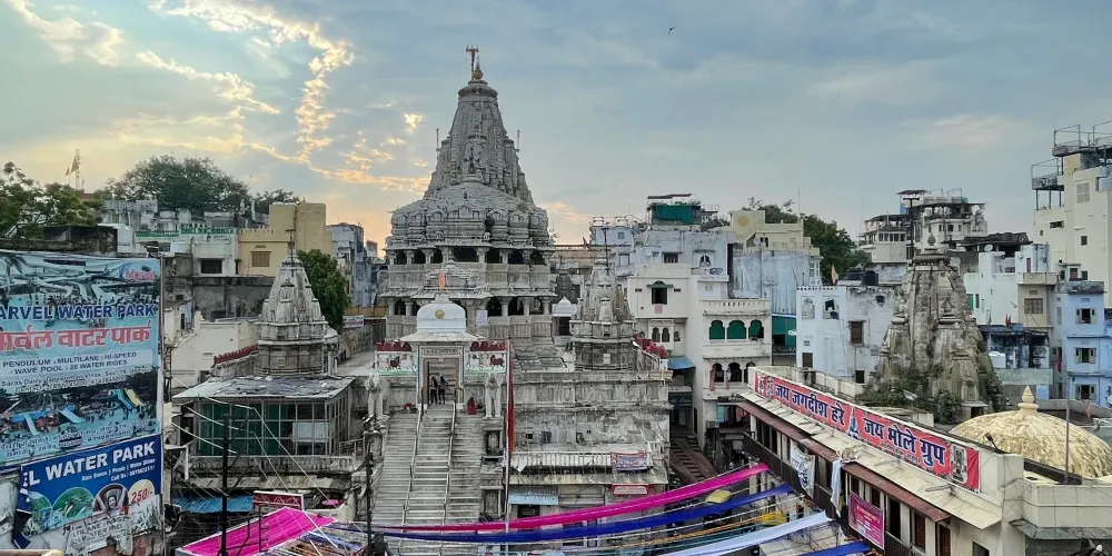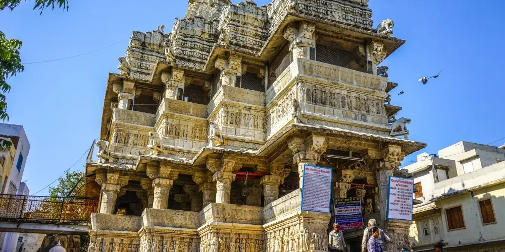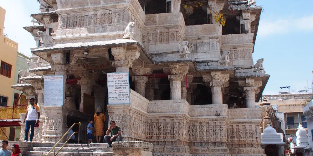 賈格迪什神廟是烏代布爾的神廟,神廟牆面和外部裝修都刻有十分精細的雕刻,就位於城市宮殿入口以北的150米處。它是在1651年由王公Jagat Singh修建的。在神廟裡面供奉著一座黑色石像,是克裡希納神以宇宙之神Jagannath現身的姿態;在神廟前的神壇上有一座Garuda(毗濕奴的半人半鳥坐騎)的銅像,而神廟的台階兩側還有幾頭大象的雕塑。