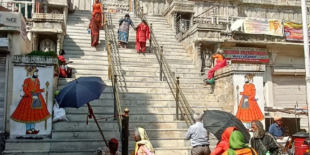 Gangaur Ghat坐落在皮丘拉湖(Lake Pichola)湖畔,是當地重要的文化與民俗活動場所。碼頭沿著湖泊而建,石階通往湖水,形成典型的印度湖畔建築風格。這裡不僅是觀賞湖景的理想地點,也是體驗當地傳統節慶和民俗文化的好去處。
