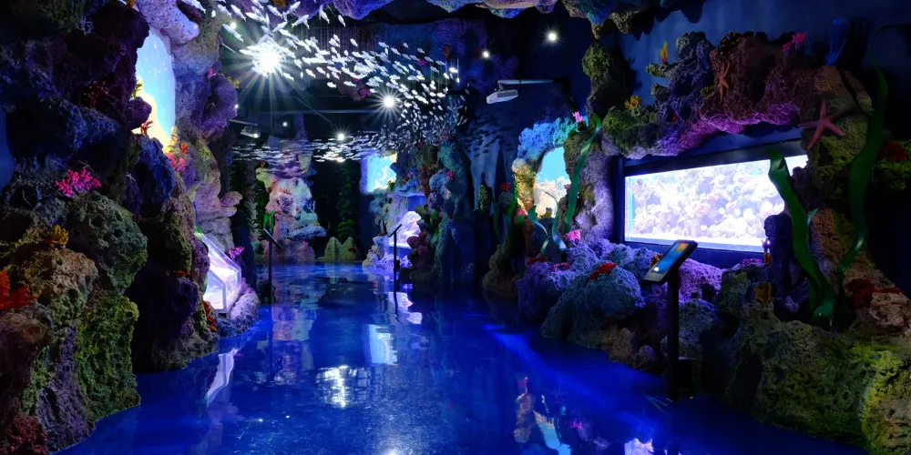 除了觀賞和互動體驗,館內還設有高級休息室、自助餐廳、紀念品商店等配套設施。遊客在這裡不僅能享受遊玩的樂趣,還能參與教育項目,學習海洋生物保護和海洋生物學知識。