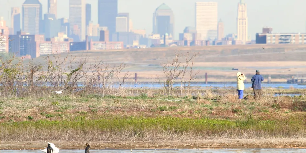 牙買加灣野生動物保護區坐落於紐約市皇后區和布魯克林區的交界處,成立於1972年,佔地9155英畝,由於處在海洋與港灣交織的特殊地理,水質適合多種海洋生物生存,為棲息在牙買加灣鹽沼上的候鳥提供了豐富的食物。