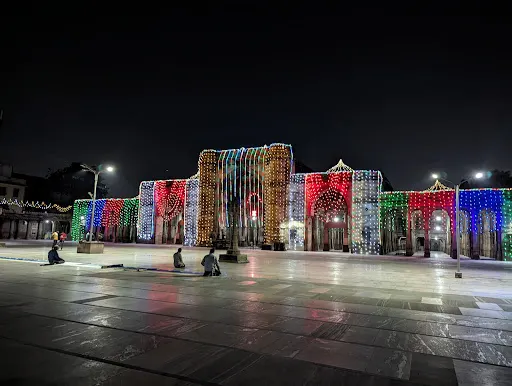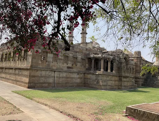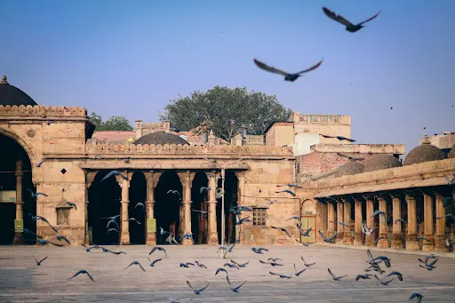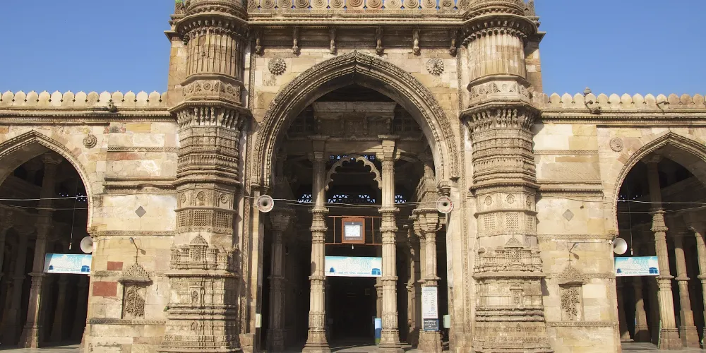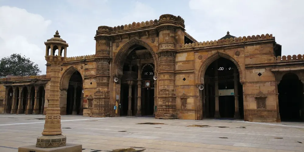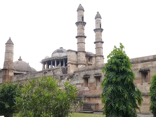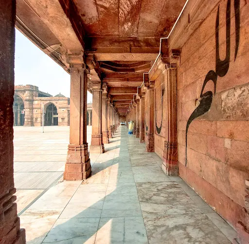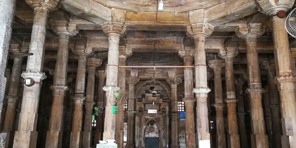 賈瑪清真寺入口處是艾哈邁德·沙阿陵墓,清真寺裡面排列著將近260根石柱,支撐了15個穹頂,如同在森林中一樣,莊嚴神聖。