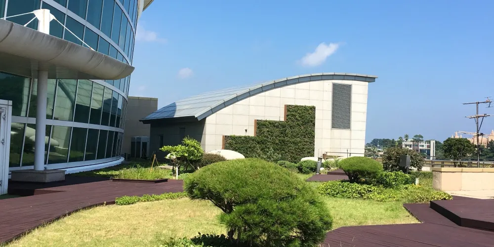 這座建築物,被濟州島和周圍附屬島嶼擁簇在懷抱裡,像是項鏈上的寶石,在自然山水間熠熠生光。
