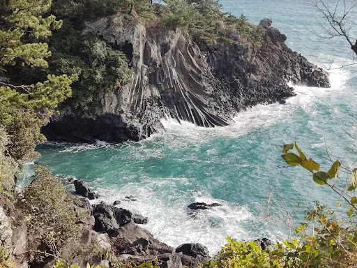 則評價柱狀節理帶位於位於濟州島西歸浦市的中文洞到大浦洞之間的海岸上,是漢拏山噴出的熔岩流入中文地區前海時冷卻形成,由大小不一的四方或六角成的石柱組成。走到懸崖邊,就可以看到佇立在海中的柱狀節理帶,清澈的海水拍打在排列整齊的石柱上,翻起白色的浪花。